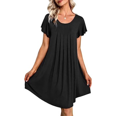 Nightgown Womens Sleepshirt Soft Sleepwear Pleated Nightshirt Comfy Sleep Dress Short Sleeve Flare Nightdress