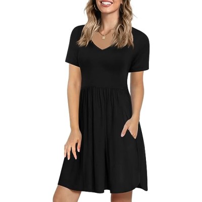 2024 Women's Summer Dress Short Sleeve Casual T Shirt Dreses Beach Flowy V Neck Sundresses with Pockets