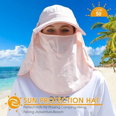 UPF 50+ Sun Hat for Golf Cycling Trekking Fishing, UV Protective Visor Headwear, Summer Outdoor Face Mask Cover Detachable