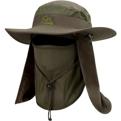 Outdoor UV Sun Protection Wide Brim Fishing Cap with Removable Flap