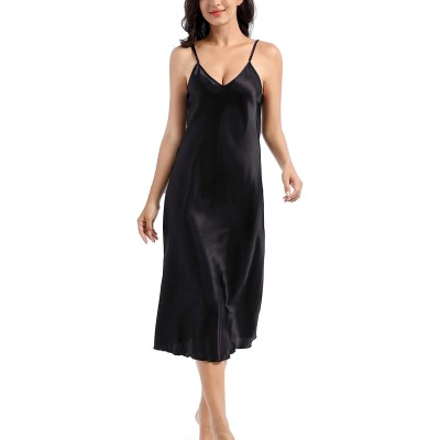 Womens Satin Nightgown Long Slip Sleep Dress Silk V Neck Nightgowns For Women