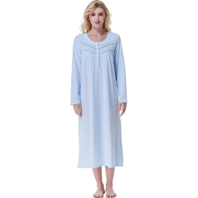 Nightgowns for Women, Soft 100% Cotton Knit Nightgowns, Comfy Long-Sleeve Ladies Sleepwear Gown for Mom