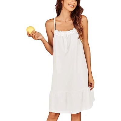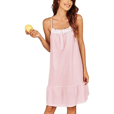 Women's 100% Cotton Lace Nightgown Sleep Dress Victorian Sleepshirt Strap Gown